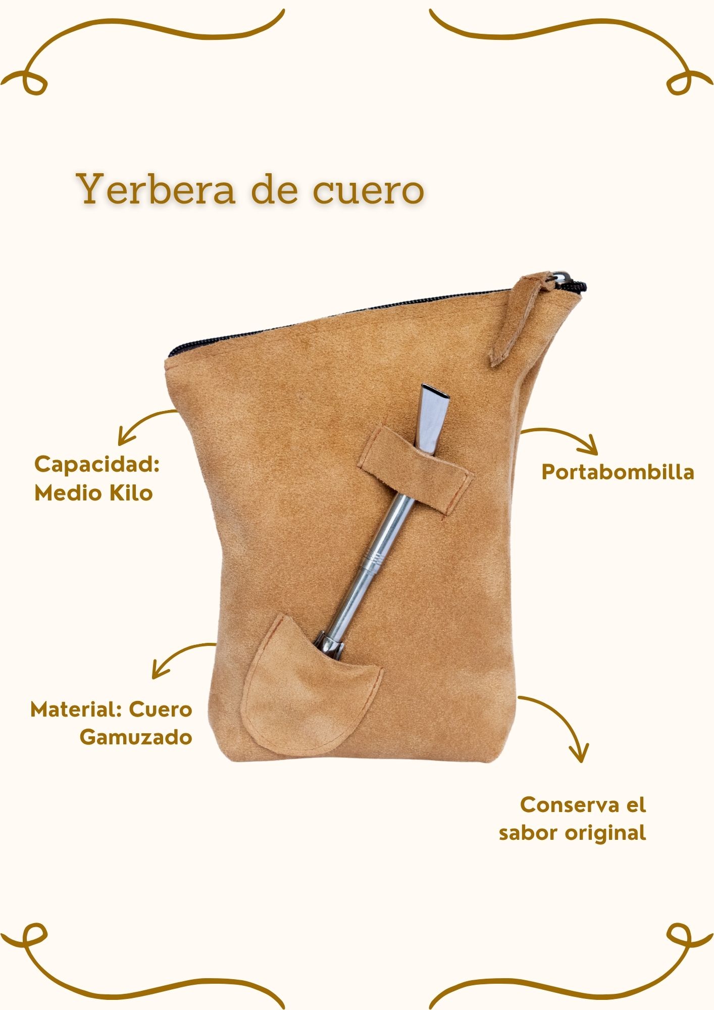 • Yerbera de cuero con Portabombilla (medio kilo)