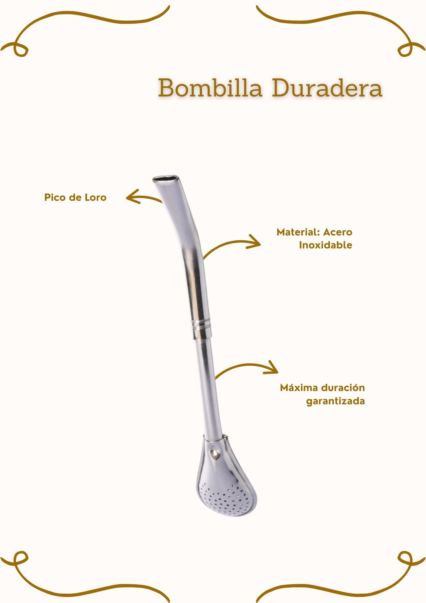 • Bombilla pico de loro de acero inoxidable